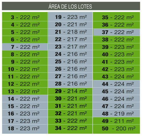 Con un total de 48 lotes disponibles, las opciones van desde los 200 m2, asegurando espacios adecuados para diversas necesidades y preferencias.